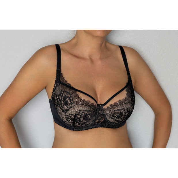Rafinuotas ir funkcionalus modelis pasižymi įmantria dviejų sluoksnių instrukcija: kaušelio vidus pagamintas iš putplasčio ir tinklelio, o viršus - iš subtilių nėrinių. Ši liemenėlė puikiai prilaiko krūtinę švelniai formuodama ją link centro ir sukurdama gundančią bei aiškiai apibrėžtą iškirptę.