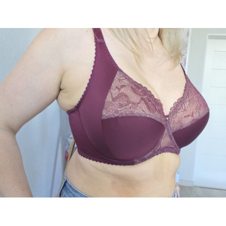 Minkšto kaušelio liemenėlė su lankeliais skirta didesniems dydžiams. Petnešėlės ir šoninė atrama sutvirtinti minkštu putplasčiu, kuris užtikrina puikų prilaikymą. Vidinė kaušelio dalis yra išklota medvilne, kad būtų patogiau dėvėti. Nėriniai su tinklelio pamušalu suteikia liemenėlei elegantišką išvaizdą. Plati apatinė juosta užtikrina stabilų prigludimą, o šoninės atraminės plokštės suteikia papildomo komforto visą dieną. Galima derinti su kelnaitėmis "Bordeaux".