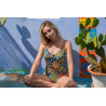 Išraiškingas ir elegantiškas vientisas maudymosi kostiumėlis, dekoruotas spalvingais ornamentiniais motyvais. Gilių mėlynų atspalvių pagrindas derinamas su ryškiomis detalėmis, kurios suteikia išskirtinumo ir prabangos pojūtį.