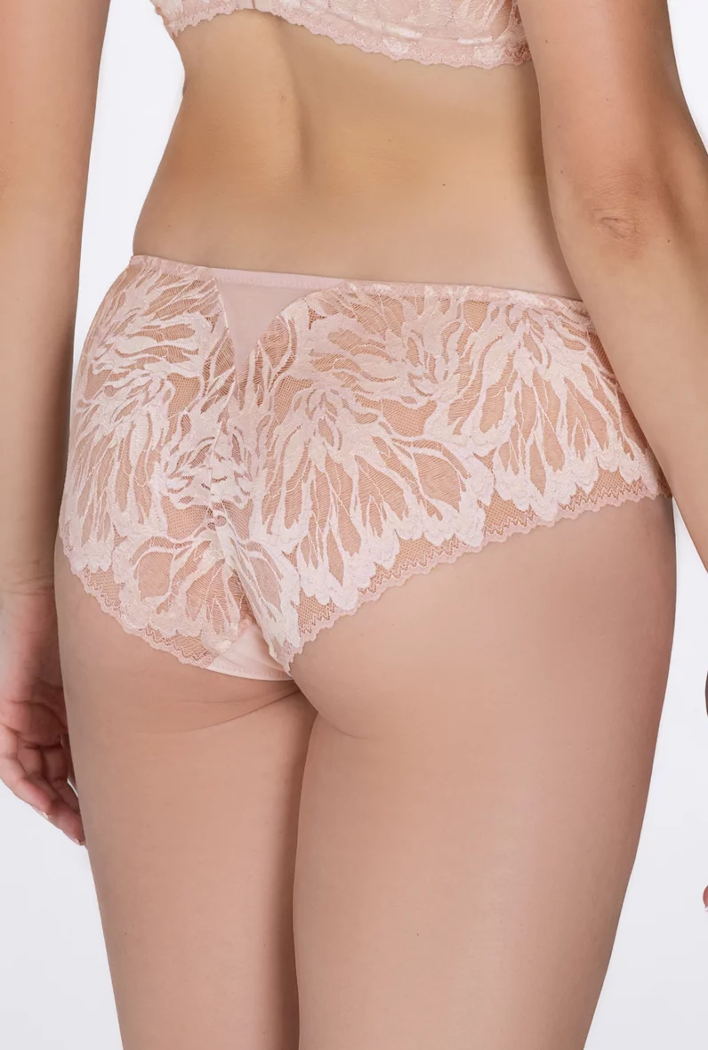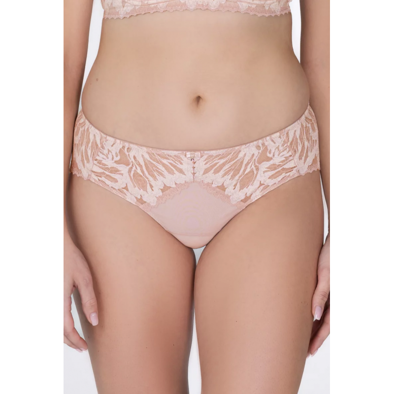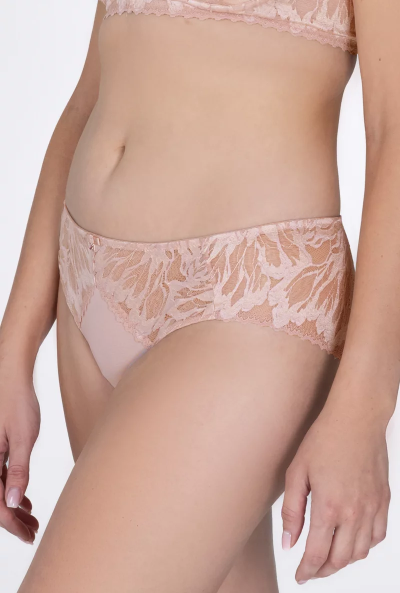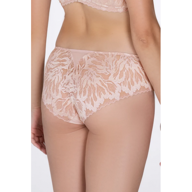 Klasikinio kirpimo kelnaitės vidutinio aukštumo liemeniu. Kelnaitės pasiūtos iš elastingų nėrinių. Tinka komplekte su liemenėle "Rebecca"