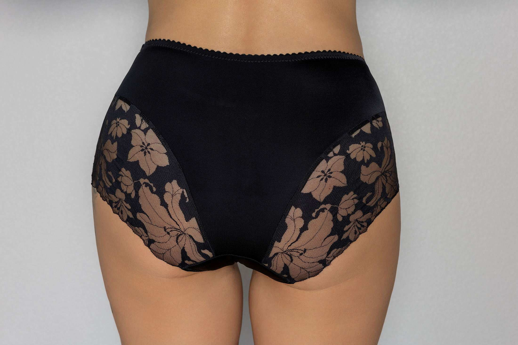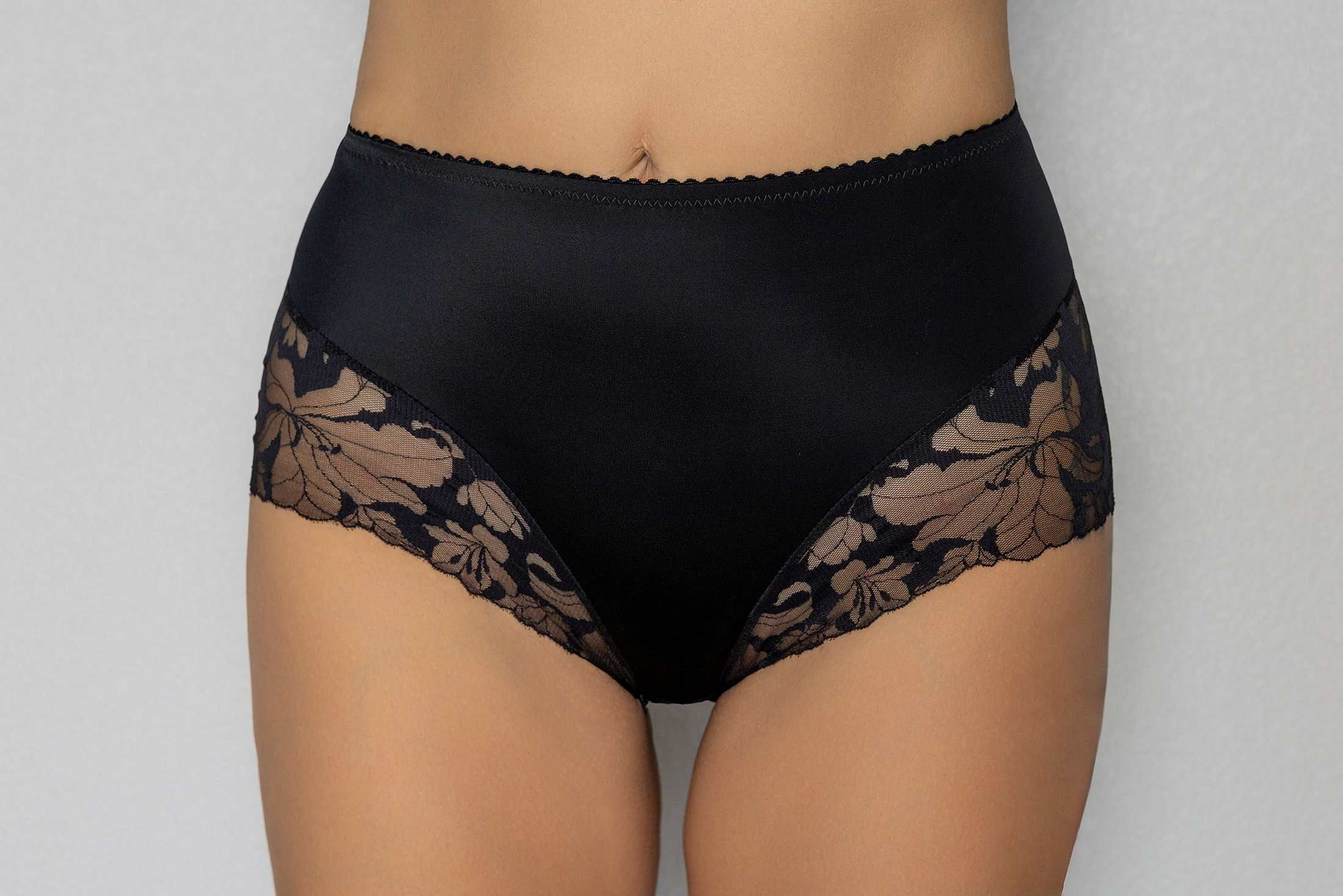 Patogios kelnaitės aukštu liemeniu yra pagamintos iš elastingo audinio su atlasiniu blizgesiu ir tampriais nėriniais. Sukurtos taip, kad būtų dailiai prigludusios ir užtikrintų išskirtinį komfortą visą dieną. Kelnaitės neįsirėžia ir nesimato po drabužiais. Tinka komplektuoti su kolekcijos "Butterfly" liemenėlėmis.