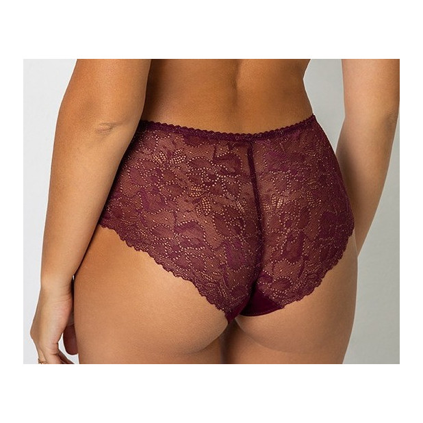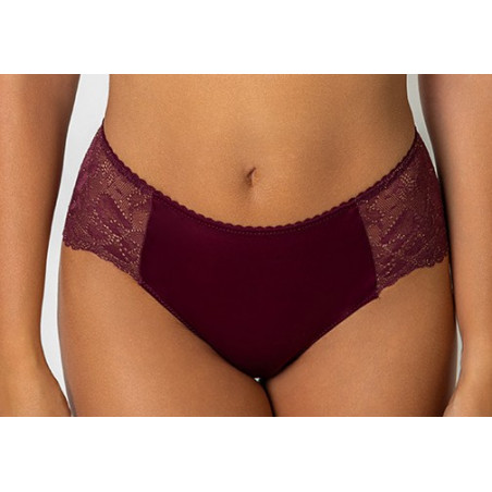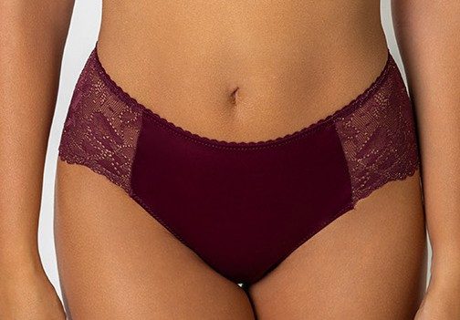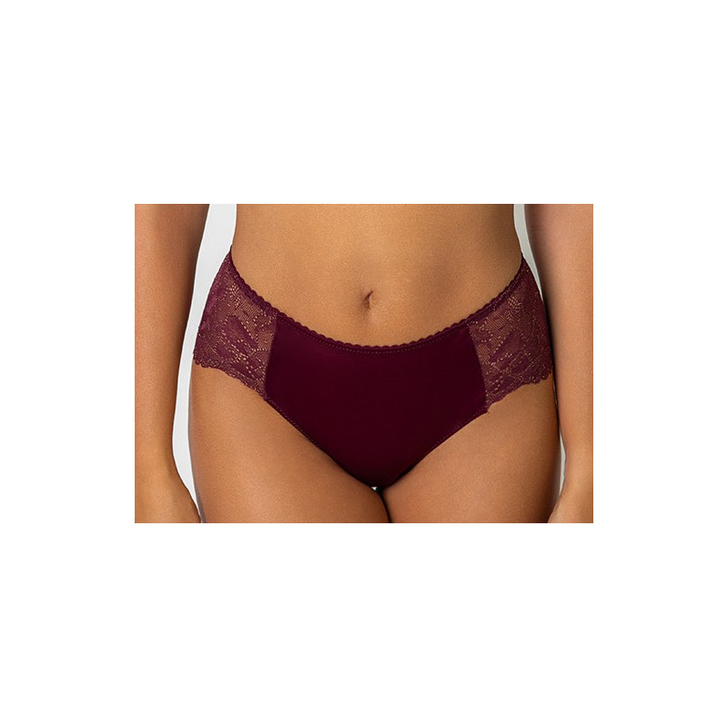 Klasikinio kirpimo kelnaitės pasiūtos iš elastingo audinio su atlasiniu blizgesiu ir tamprių nėrinių. Puikiai suprojektuota konstrukcija tinkanti tiek jaunoms moterims, tiek brandesnėms damoms. Tinka komplektuoti su kolekcijos "Bordeaux" liemenėlėmis.