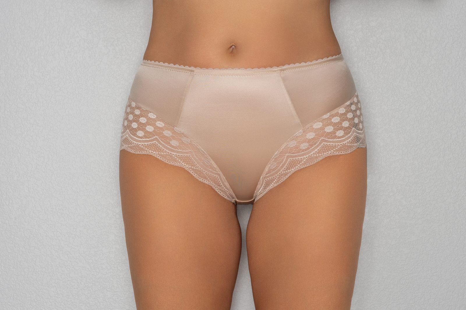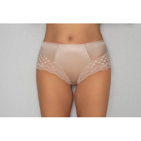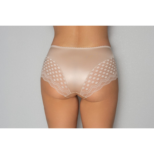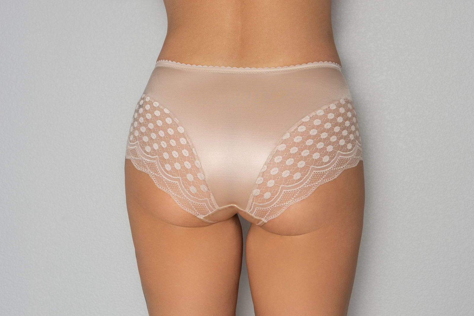 Patogios šortukų tipo apatinės kelnaitės aukštu liemeniu. Kelnaitės pagamintos iš šilkinio audinio su satino blizgesiu ir švelniais elastiniais nėriniais, kurie suteikia elegancijos ir komforto. Jos yra ypač patogios ir nematomos po drabužiais. Tinka komplekte su kolekcijos "Coquette" liemenėlėmis.