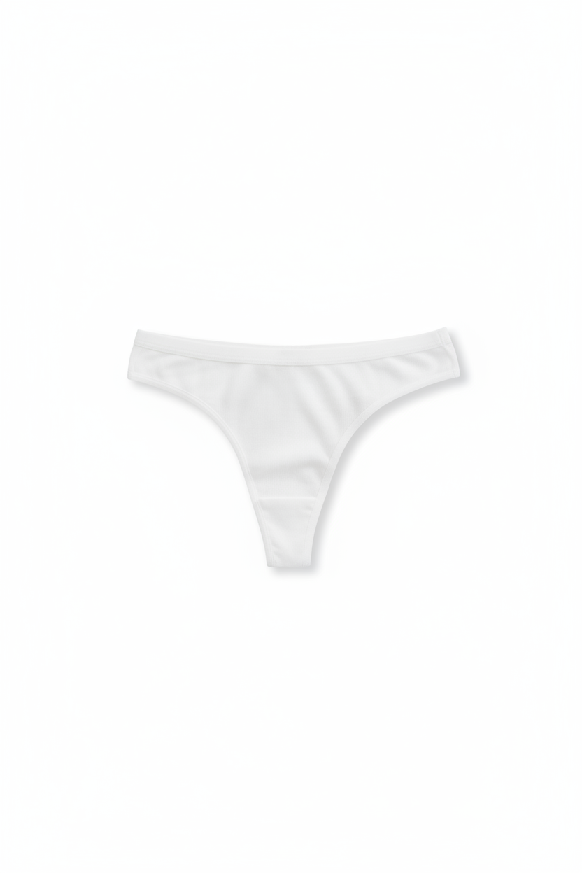 Minimalizmas, komfortas ir nepastebimas prigludimas. Šios klasikinės baltos spalvos „stringų“ tipo kelnaitės – idealus pasirinkimas kasdieniam dėvėjimui, kai norisi jaustis patogiai ir užtikrintai.