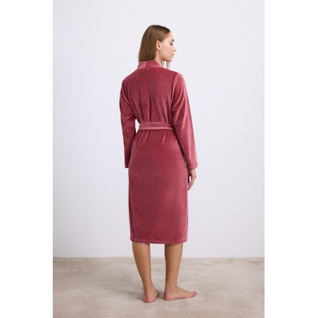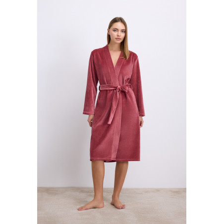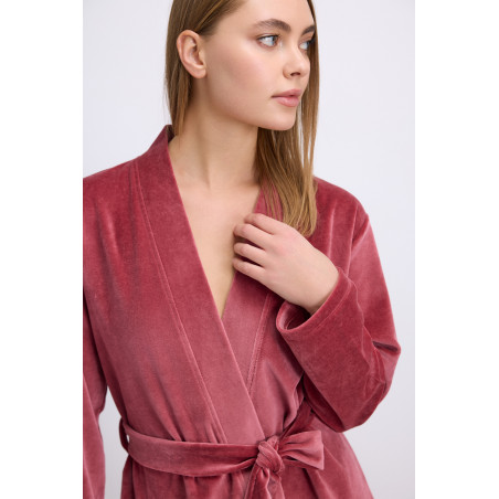 Mielas ir jaukus veliūro chalatas. Modelis vidutinio ilgumo, patogus nešioti, susijuosia dirželiu. Medžiaga vidutinio storumo.