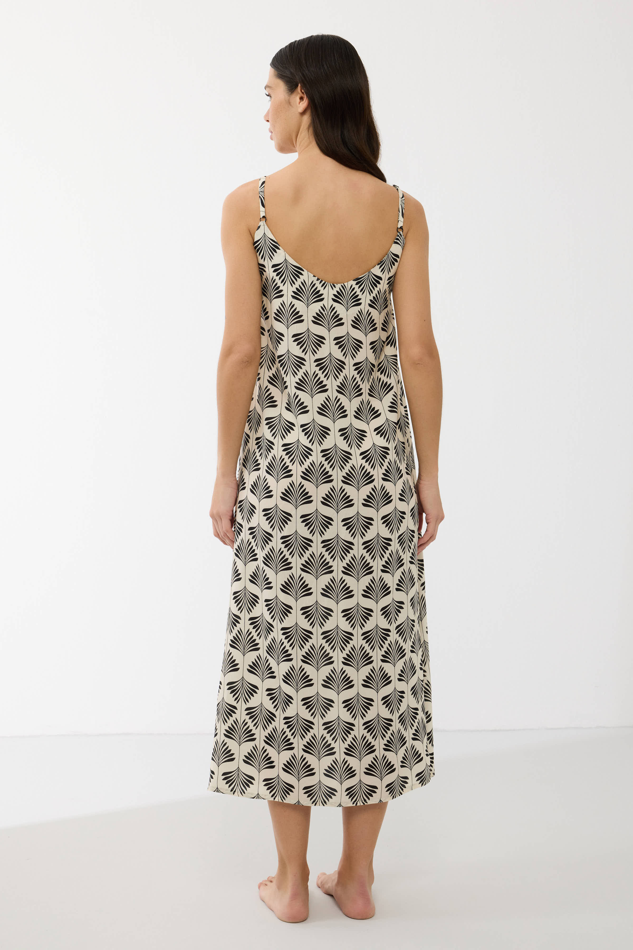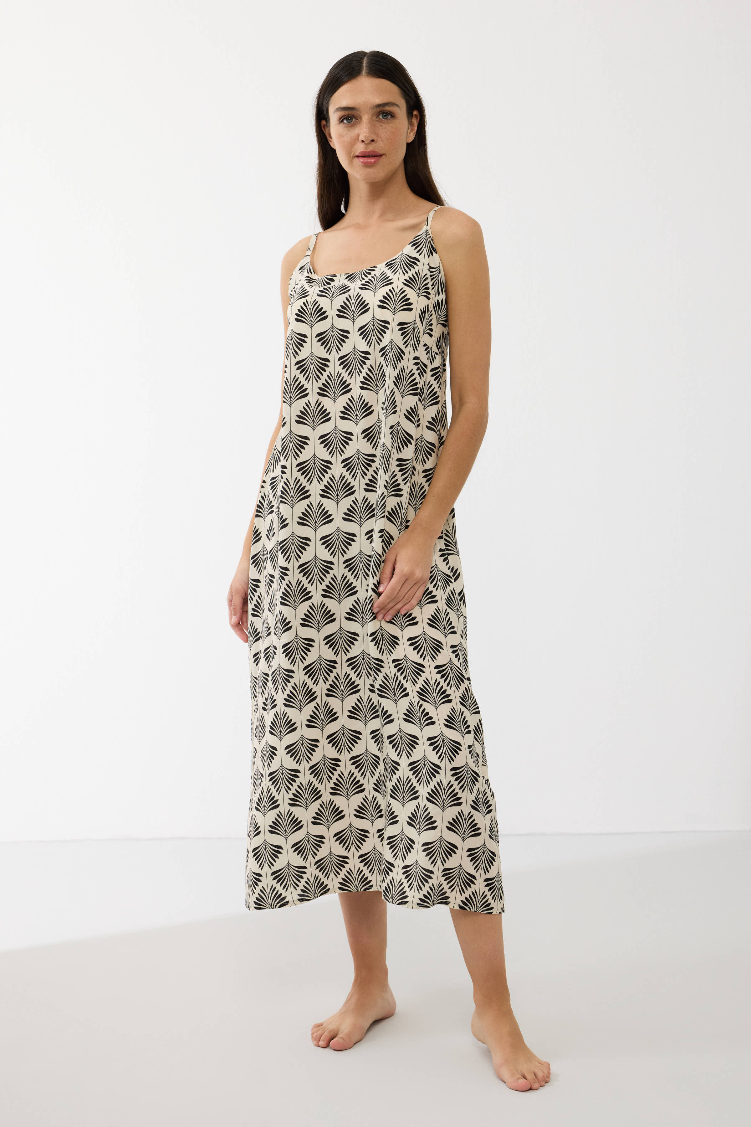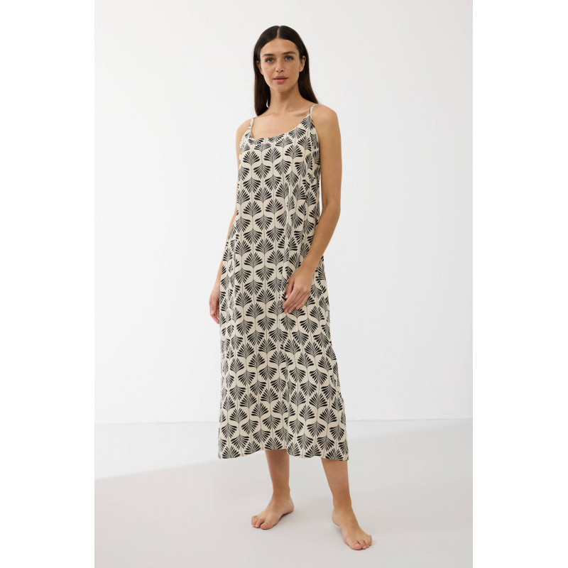 Laisvo silueto modelis gražiai krinta, nevaržo judesių ir leidžia jaustis patogiai visos nakties metu. Plonos petnešėlės ir švelni iškirptė suteikia lengvumo bei moteriškumo, o šonuose esantys nedideli skeltukai užtikrina dar daugiau judėjimo laisvės.