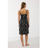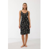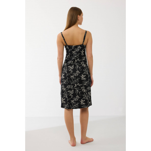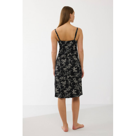 Šie naktinukai sujungia patogumą ir subtilią eleganciją. Tamsaus audinio pagrindas dekoruotas švelniu šviesiu augaliniu raštu, kuris suteikia modeliui lengvumo ir rafinuotumo.