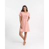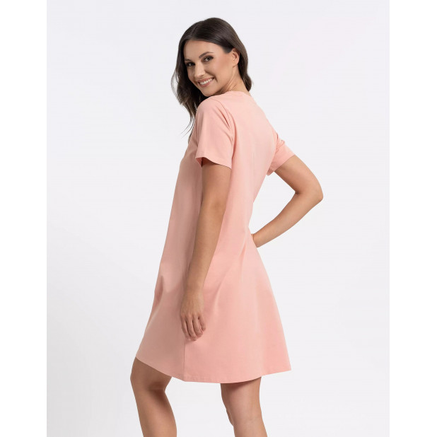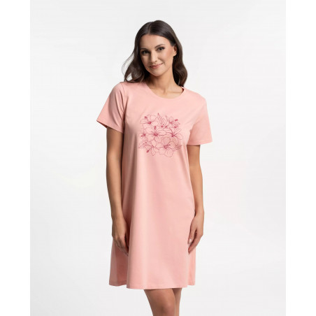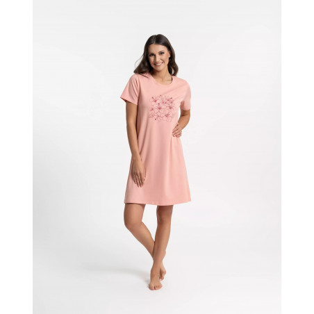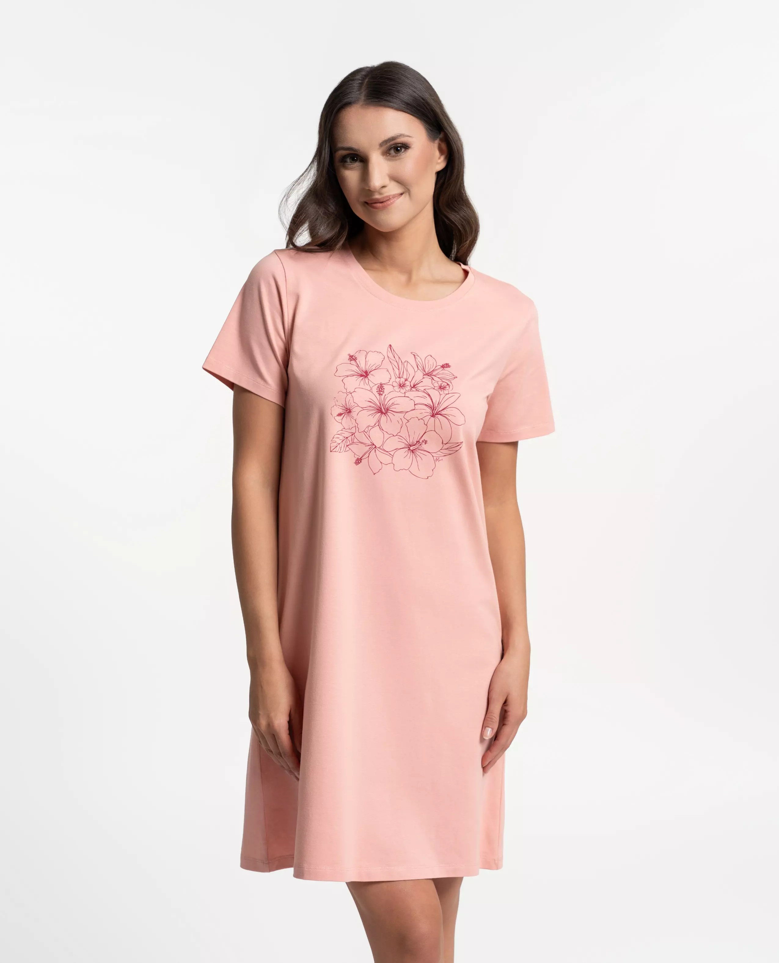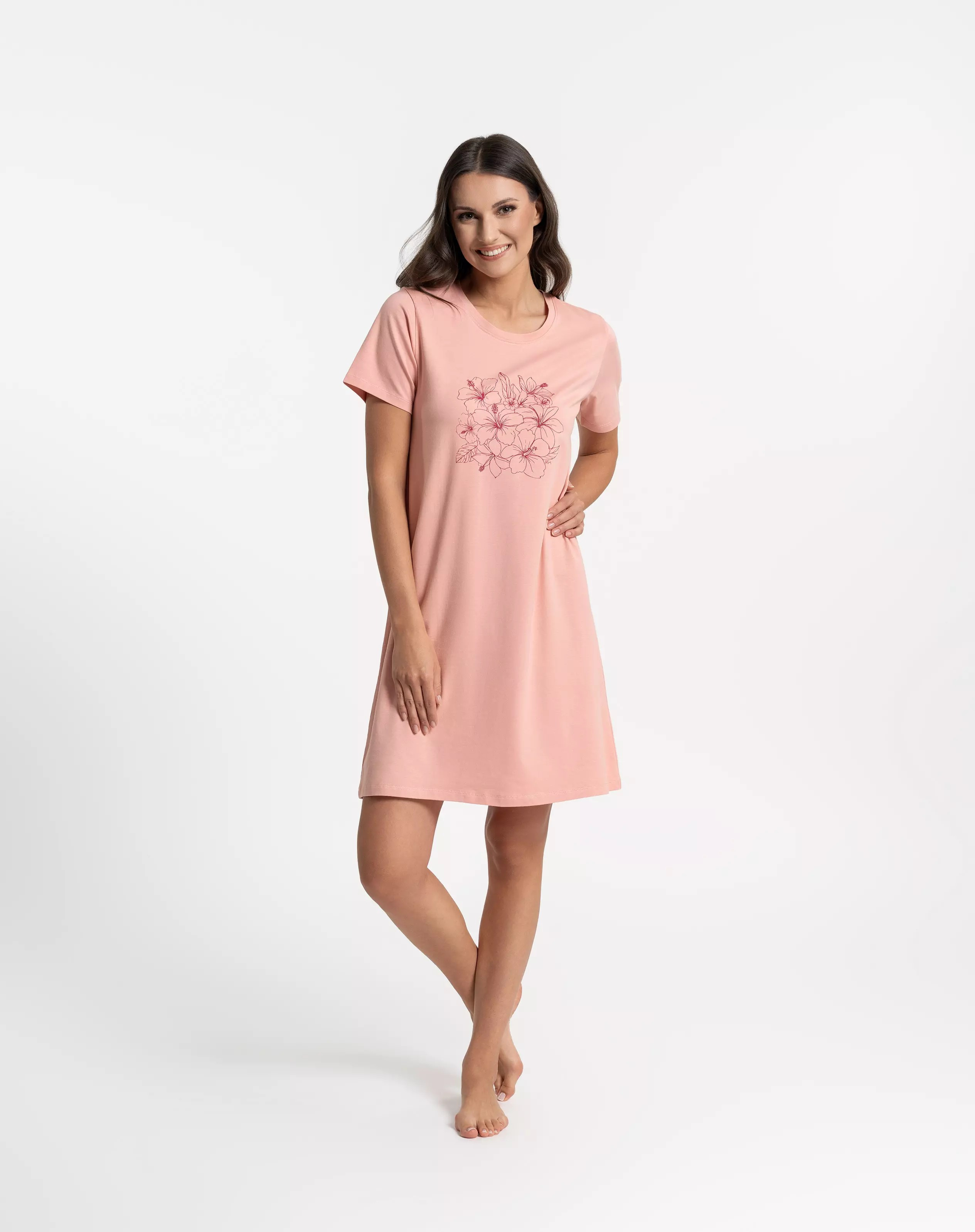 Šie moteriški naktinukai sukurti maksimaliam komfortui ir judėjimo laisvei miegant ir namuose. Pagaminti iš aukštos kokybės medvilnės su elastanu, jie yra minkšti, malonūs liesti ir šiek tiek tamprūs, todėl prisitaiko prie figūros, nejaučiant apspaudimo jausmo. Paprastas, šiek tiek platėjantis kirpimas užtikrina komfortą ir leidžia nevaržomai judėti, o trumpos rankovės ir klasikinė apvali iškirptė suteikia universalumo. Subtilus raštas priekyje suteikia subtilų dekoratyvinį akcentą, išlaikant minimalistinį naktinukų stilių. Tai puikus pasirinkimas bet kokiam sezonui moterims, kurios vertina patogumą, natūralias medžiagas ir nesenstantį stilių.