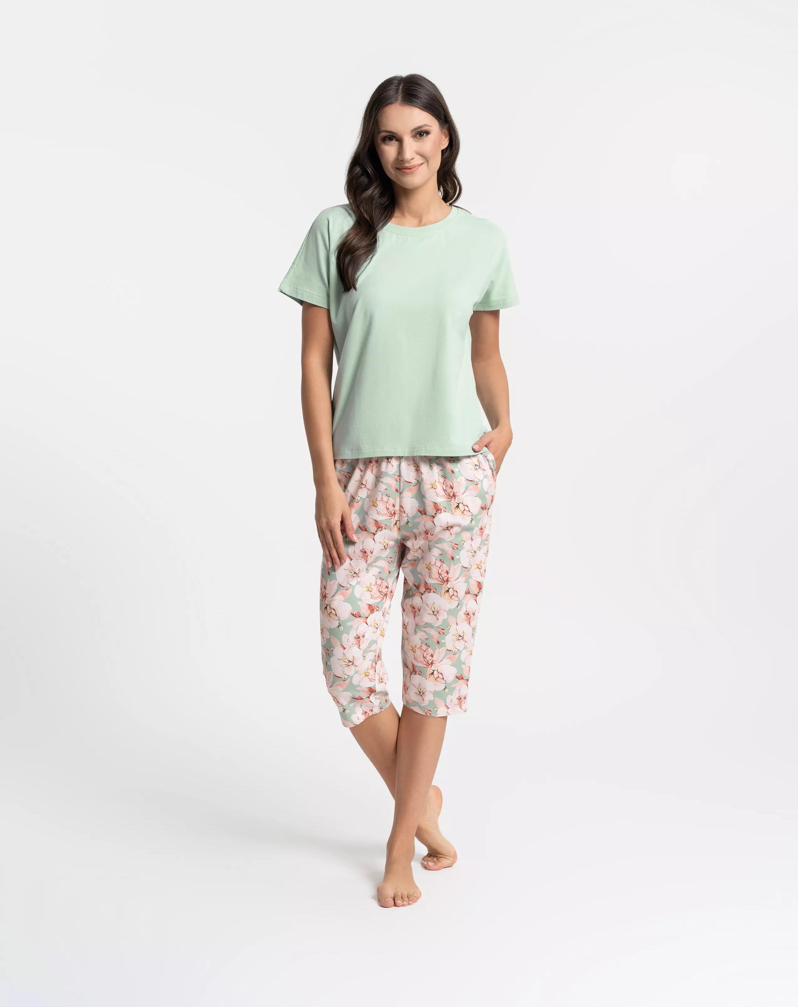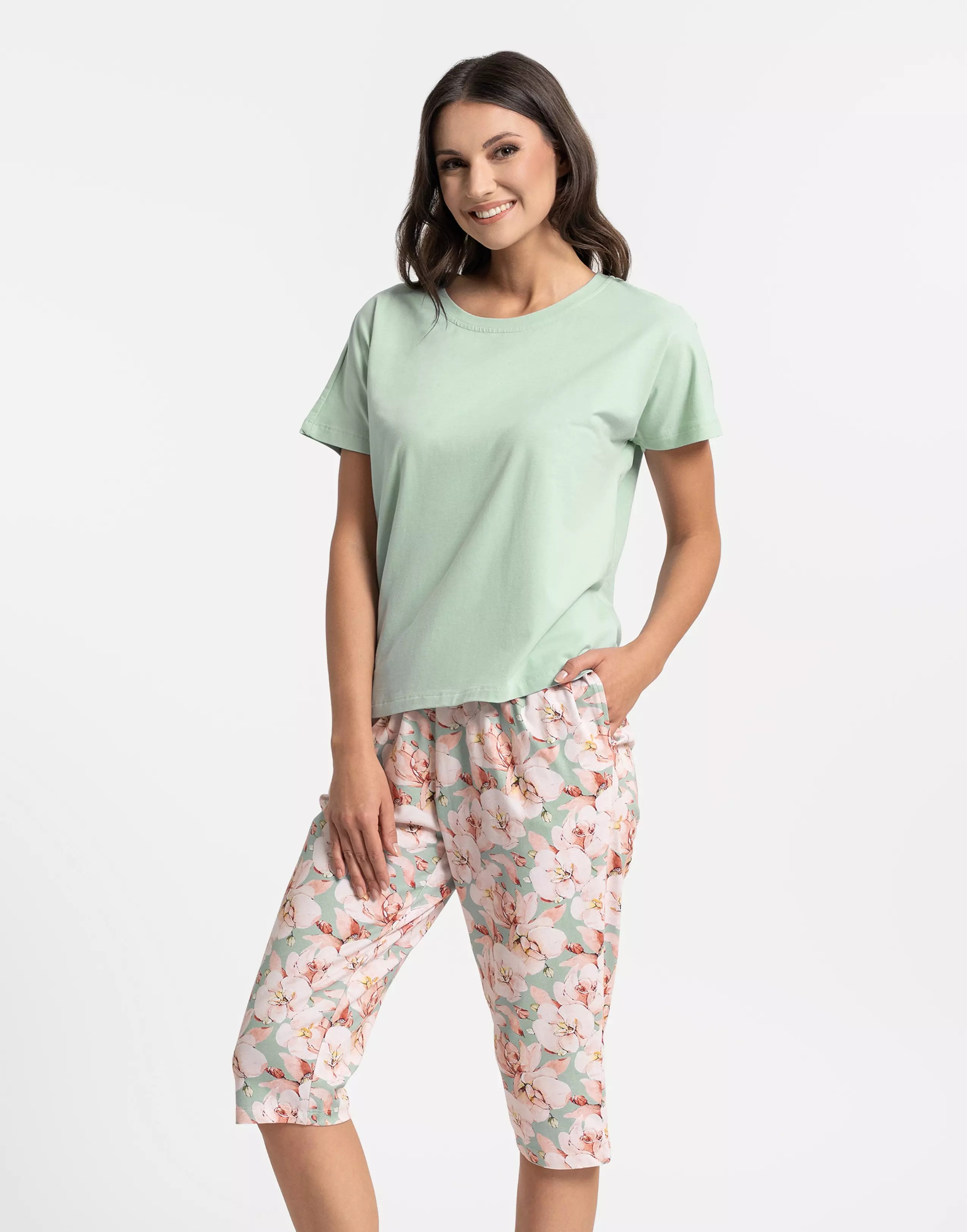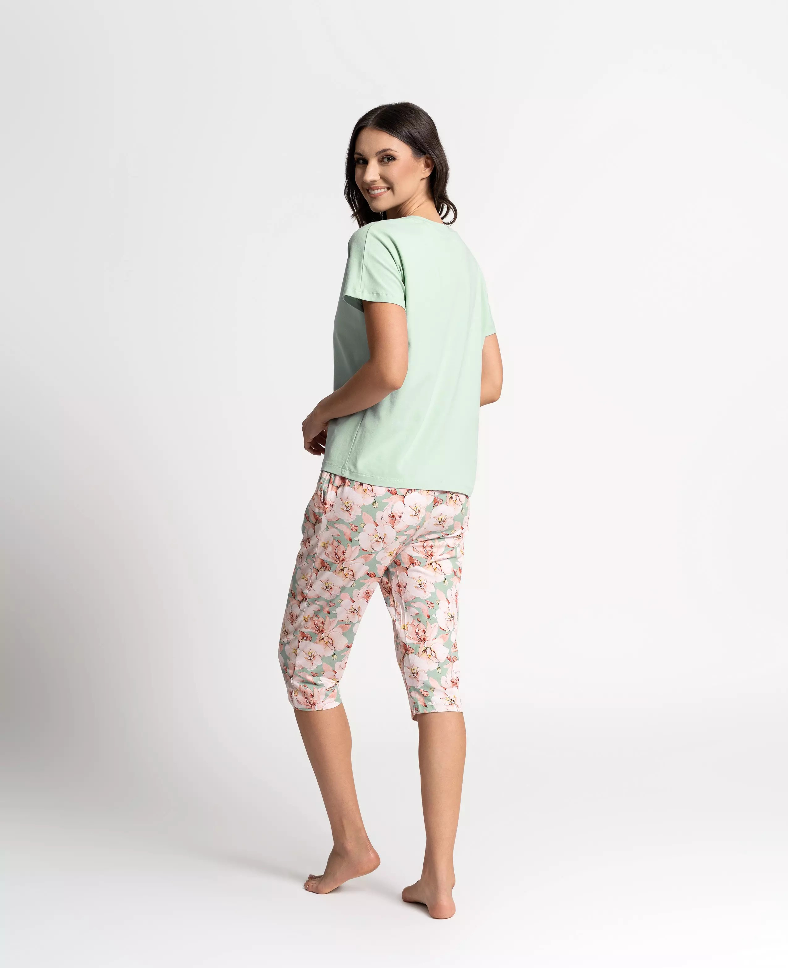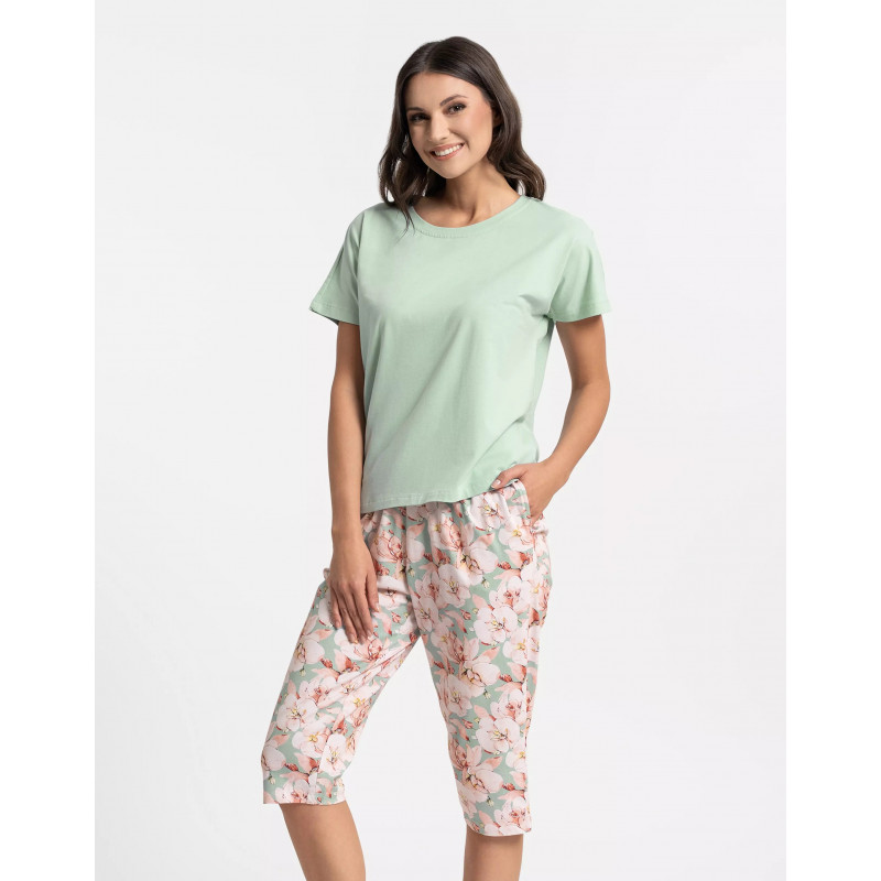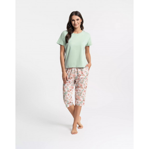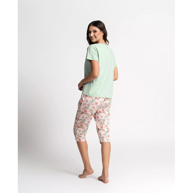 - Moteriška pižama su marškinėliais ir 3/4 kelnėmis