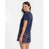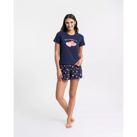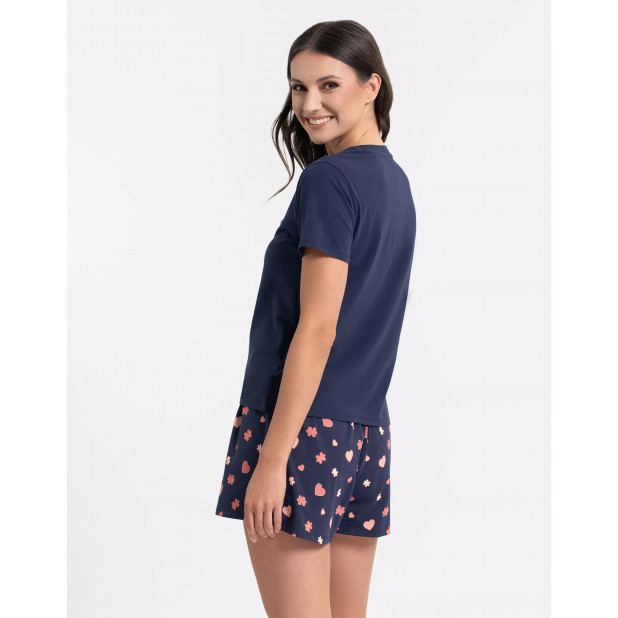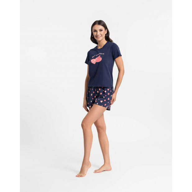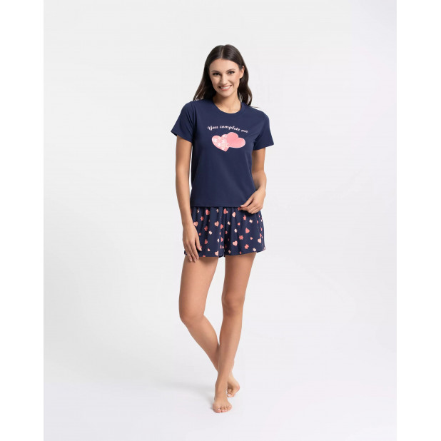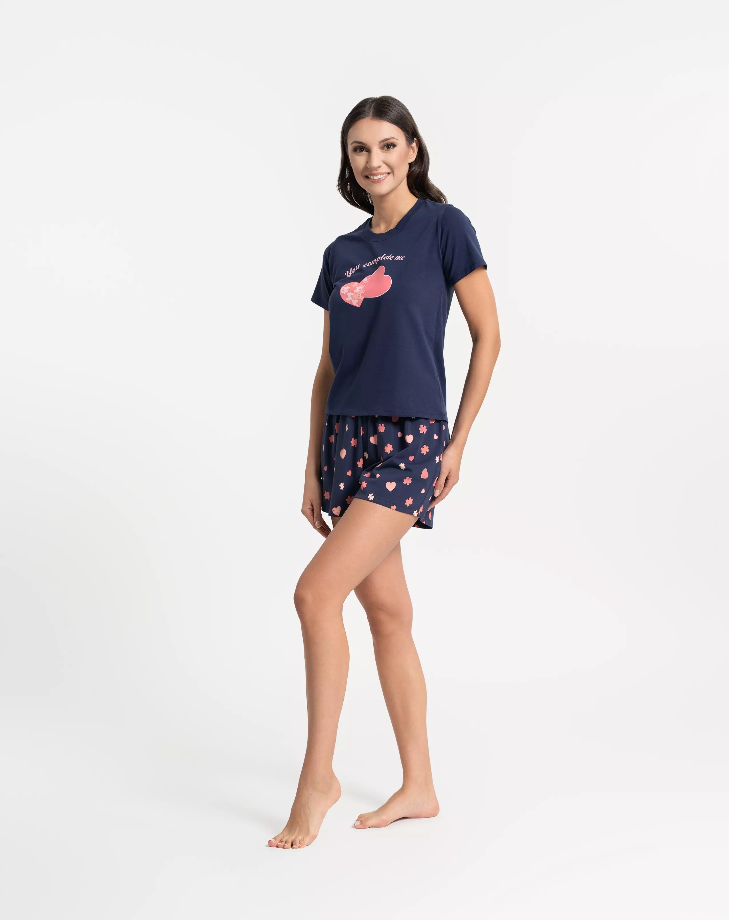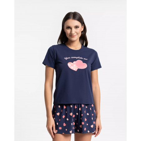 Šis žavingas moteriškas trumpomis rankovėmis pižamos komplektas su šortais derina patogumą ir stilių, užtikrindamas patogumą kiekvieną naktį. Pagamintas iš aukštos kokybės medvilnės su elastano mišinio, jis yra tamprus, gerai priglunda ir patvarus. Marškinėliai su linksmu širdelių ir dėlionės raštu bei mieli šortai puikiai tinka šiltoms naktims.
