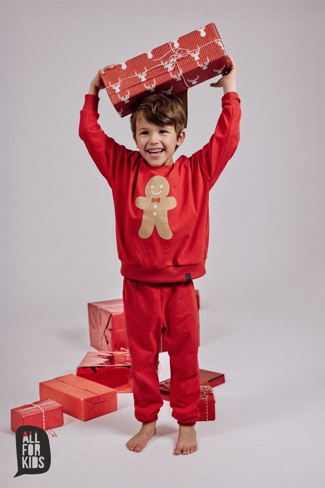 Kokybiško trikotažo  žaisminga pižama. Rankogaliai ir kelnių apačios su mankietais.  Komplektas patogus miegoti ir vaikščioti namuose. Galima derinti su moteriška, vyriška ar mergaičių pižama "Meduolis".