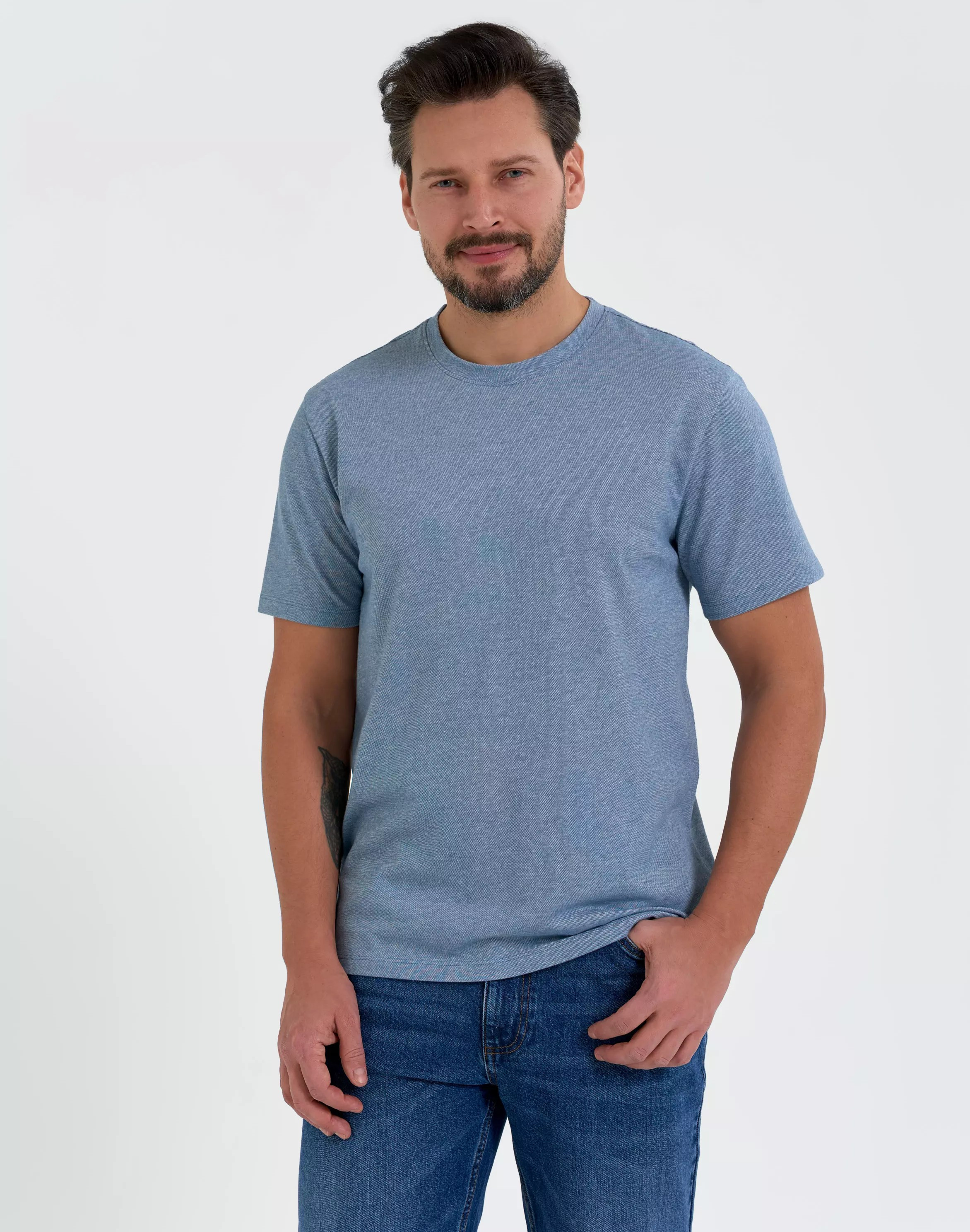 Švelni, melange tipo spalva suteikia marškinėliams subtilumo ir modernumo, todėl juos lengva derinti su džinsais, šortais ar sportine apranga.