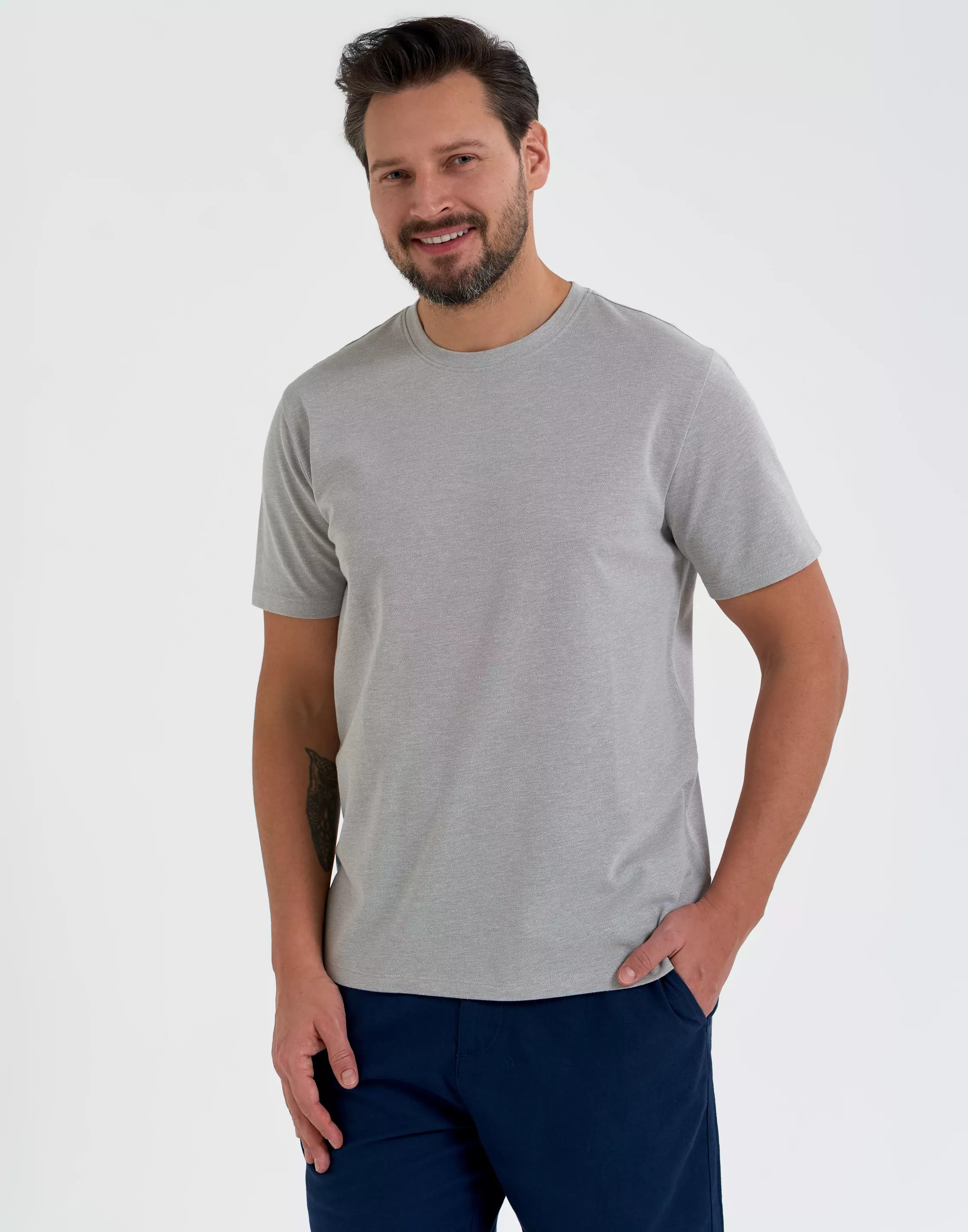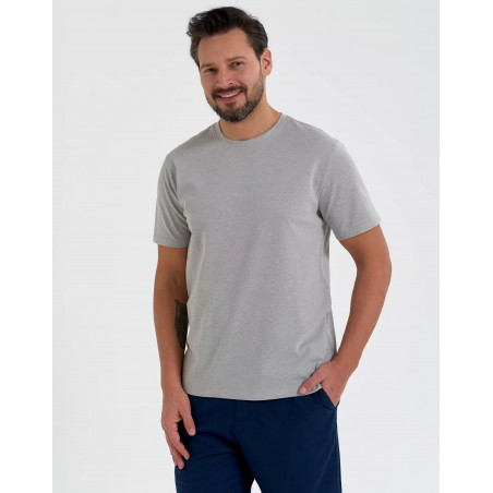 Švelni, melange tipo spalva suteikia marškinėliams subtilumo ir modernumo, todėl juos lengva derinti su džinsais, šortais ar sportine apranga.