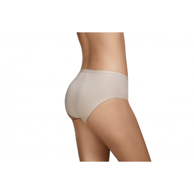 Klasikinio kirpimo kelnaitės vidutinio aukštumo liemeniu. Šios kelnaitės pasiūtos iš minkšto, kvėpuojančio ir odai draugiško audinio, kuris suteikia komfortą nešiojant. Kruopšti apdaila ir plokščios siūlės sumažina trinties ir dirginimo pojūtį. Idealiai tinka kasdieniam naudojimui.