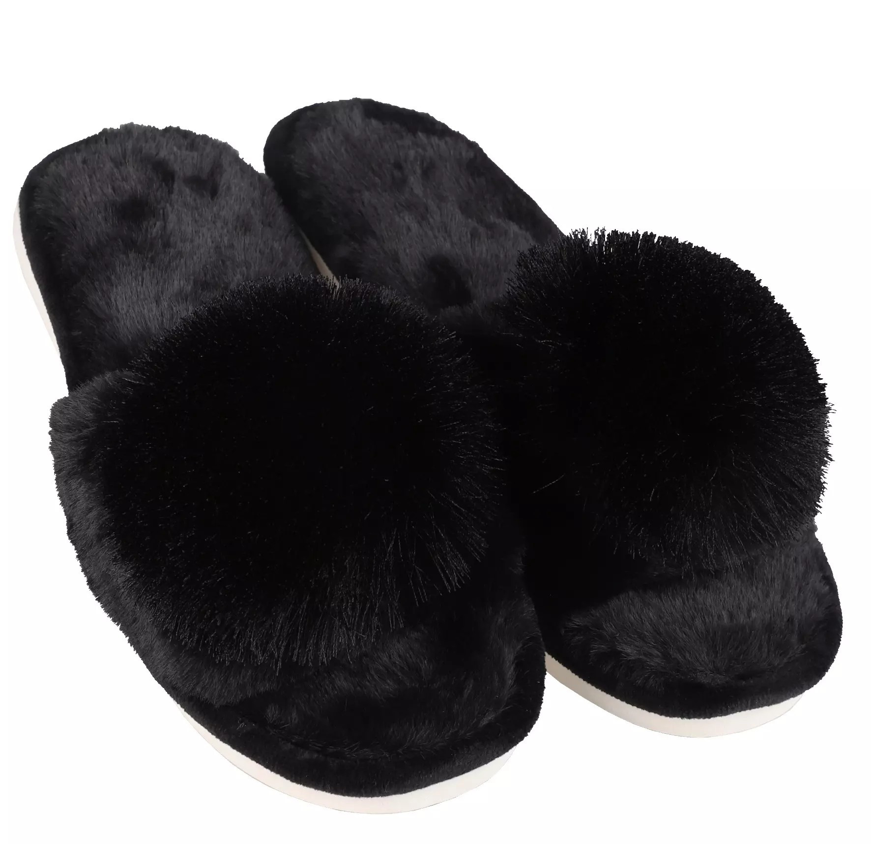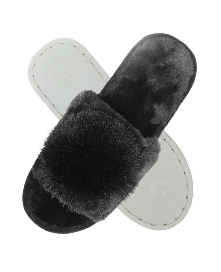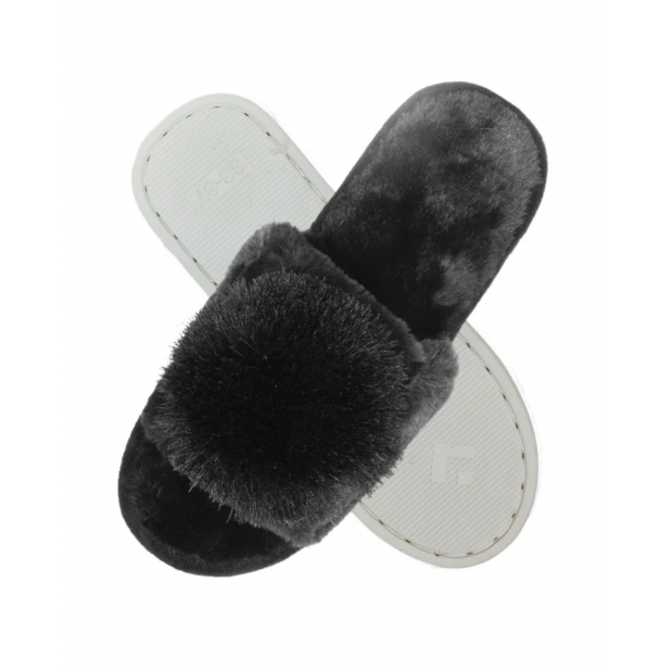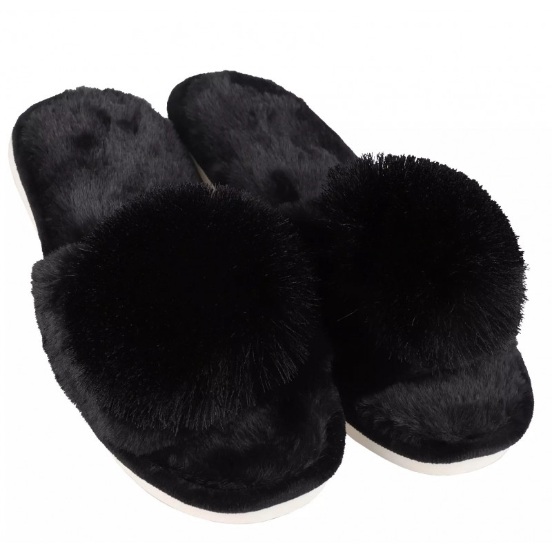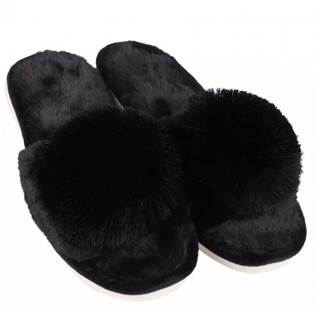 Juodos šlepetės su kutų bumbulais